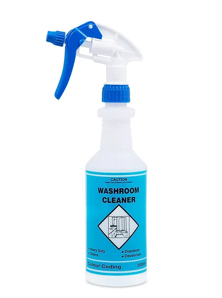 - Colour Coded 500ml spray bottle for washroom cleaner. - Dilution instructions on bottle.