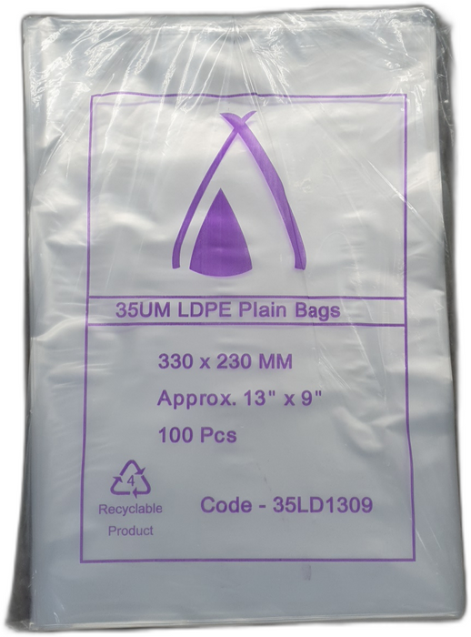 POLY BAG 13X9 (35UM) 330X230MM SLV