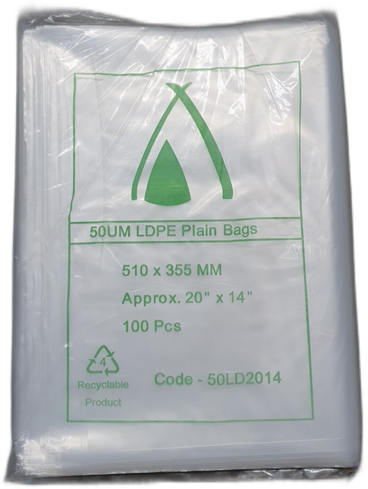 POLY BAG 20X14 (50UM) 510X355MM SLV