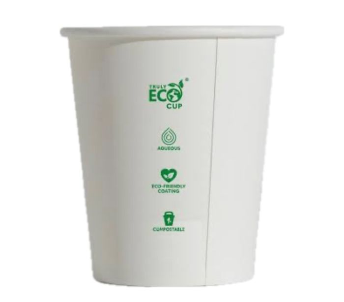 - Made from aqueous lined paper. - Suitable for hot or cold products. - Not recyclable. - Home compostable. - Brim fill capacity: 120ml.