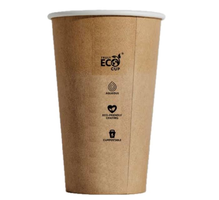 - Made from aqueous lined paper. - Suitable for hot or cold products. - Not recyclable. - Home compostable. - Brim fill capacity: 510ml.