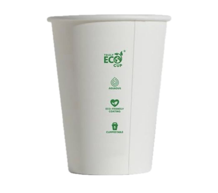 - Made from aqueous lined paper. - Suitable for hot or cold products. - Not recyclable. - Home compostable. - Brim fill capacity: 300ml.