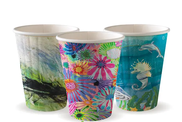 - Made from premium paper board. - Suitable for hot or cold products. - Lined with PLA bio plastic. - Not recyclable. - Not compostable. - Brim fill capacity: 260ml. * PLEASE NOTE: Cup artwork might differ as new designs are featured every 3 months. Pictured here are designs from the latest Art Series edition. Unfortunately, we cannot sell individual art cups and cannot guarantee which prints or which series of prints will be in each carton.