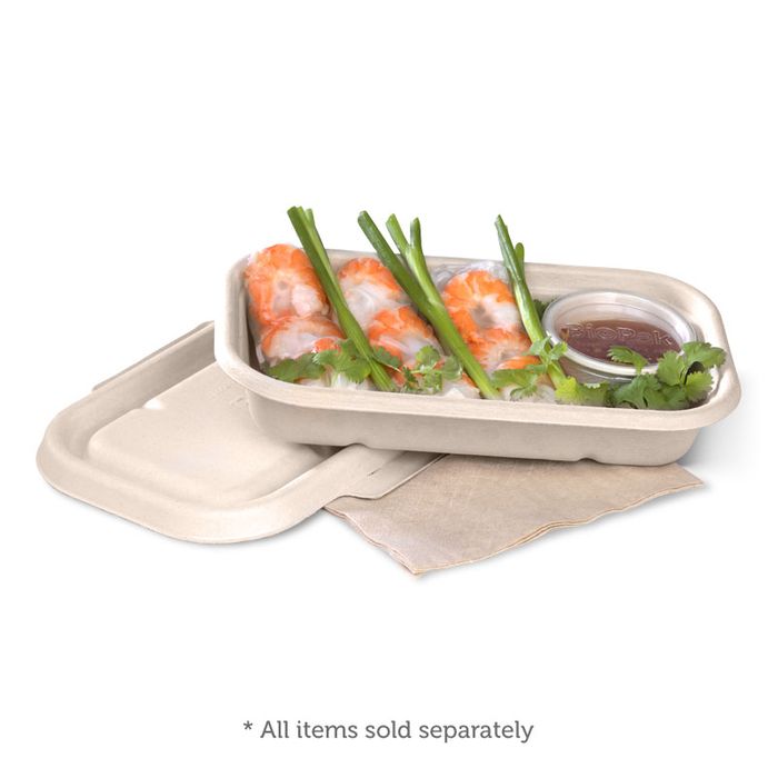 - No added PFAS. - Made from renewable sugarcane pulp. - Suitable for hot and cold foods. - Grease and water resistant. - Not suitable for microwave or oven. - Not recyclable.