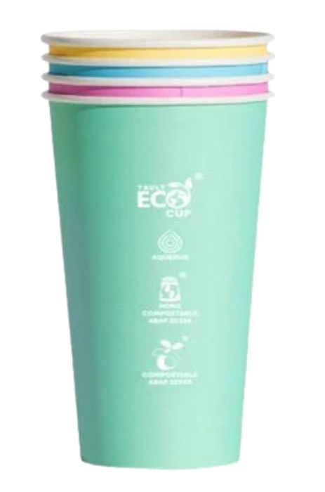 - Made from white paper board. - Aqueous lined to creat a moister resistant barrier. - Suitable for cold products only. - Not suitable for microwave. - Not recyclable. - Come in a mixed sleeve of four colours. - Brim fill capacity: 480ml.