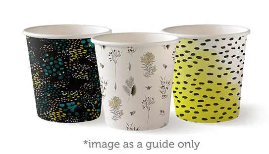- Made from premium paper board. - Suitable for hot or cold products. - Lined with PLA bio plastic. - Not recyclable. - Not compostable. - Brim fill capacity: 120ml. * PLEASE NOTE: Cup artwork might differ as new designs are featured every 3 months. Pictured here are designs from the latest Art Series edition. Unfortunately, we cannot sell individual art cups and cannot guarantee which prints or which series of prints will be in each carton.