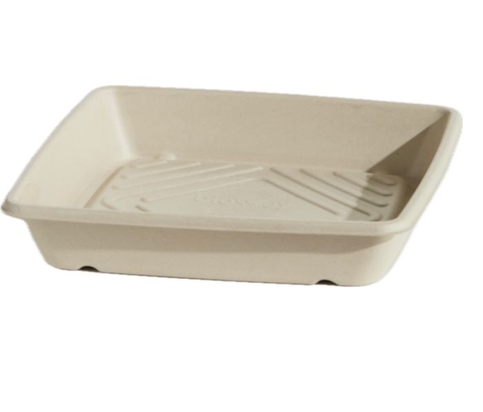 - Made from sugarcane. - Lined with PLA bio plastic to prevent food soaking through. - Suitable for hot and cold food. - Not recyclabe. - Industrial compostable only.