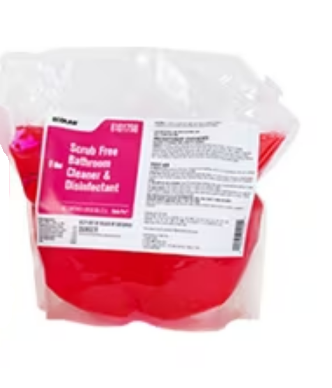 - Scrub free bathroom cleaner and disinfectant. - Suitable for use on tubs, showers, counter tops, toilets and sinks. - Effective against norovirus, mold, mildew and fungi. - Streak-free performance on hard surfaces, glass and chrome. - Clean fresh scent. - Requires no PPE if used accordingly to dilution.