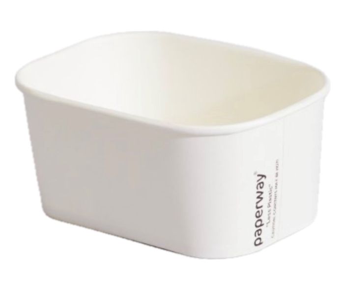 - Made from white paper board. - Suitable for hot and cold products. - Plastic PP leak proof lining. - Suitable for microwave (Heat up only). - Not suitable for oven. - Not recyclable.