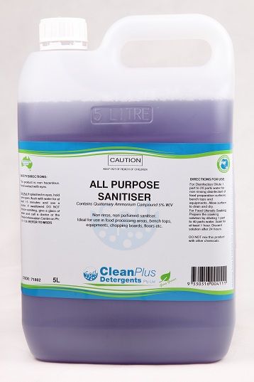 - Non rinse, non perfume sanitiser. - Effective for mould treatment for cool rooms and outdoor areas. - Biodegradable. - Septic safe. - Contains 50g/L concentrated quaternary ammonium compound. - Contains 40g/L of methylated spirits that kill most of common bacteria. - Ideal for use in food processing areas, soaking cutlery, bench tops, equipment, chopping boards and floors.