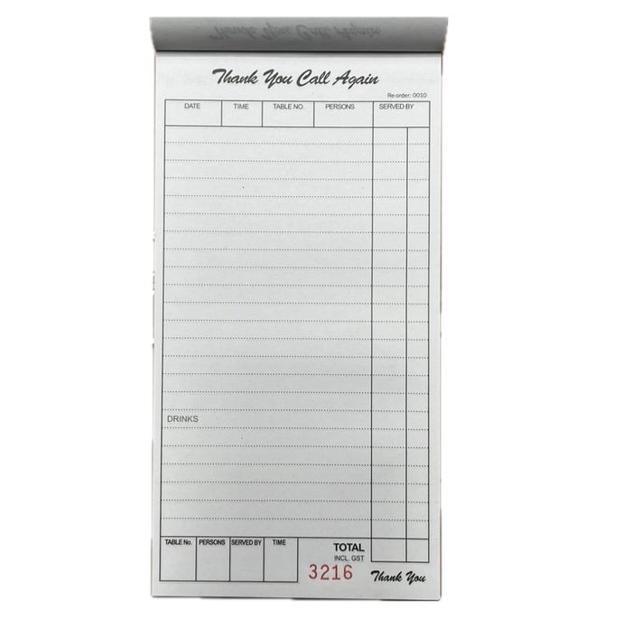 - Made from virgin paper. - Not recyclable. - Desinged to streamline order-taking. - Large writing for better visual.