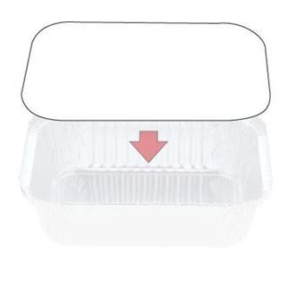 Rectangular white coated lid that fits 18-MRE07 850mL Rectangular Takeaway Tray. Marinucci Packagings' snug fitting lids are food grade PE coated to resist moisture.
