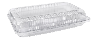Clear hinged lid container with vertical ribs for extra strength and durability is perfect for pre-packed takeaway and bakery creations. Ideal For: Sandwiches, Rolls, Catering, Pre-packed, Lunchtime, Grab and go, Bakeries, Cakes, Biscuits, Tarts, Desserts, Petrol & Convenience, P&C. 100% RECYCLABLE