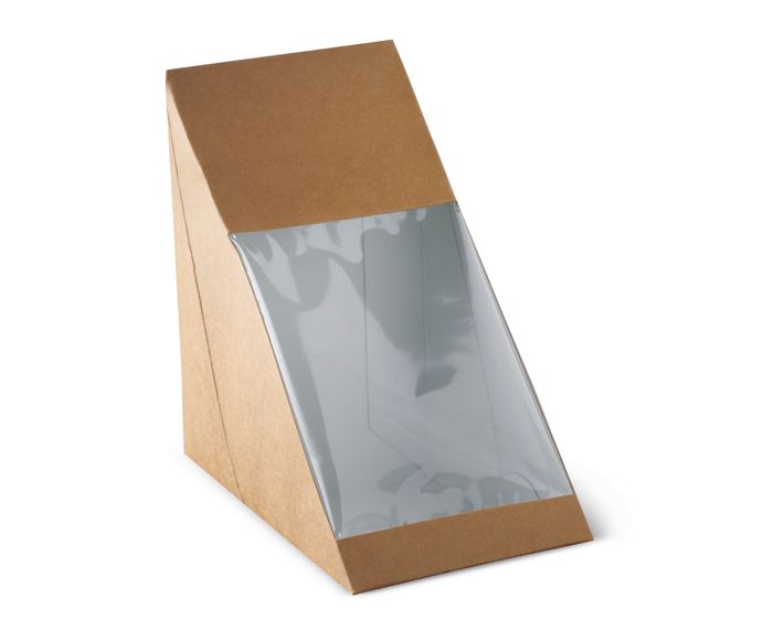 - Made from kraft paper-board. - Compostable PLA window. - 100% recyclable. - Suitable for cold foods only. - Not suitable for use in a microwave or oven. - Not recommended for long-term refrigeration.