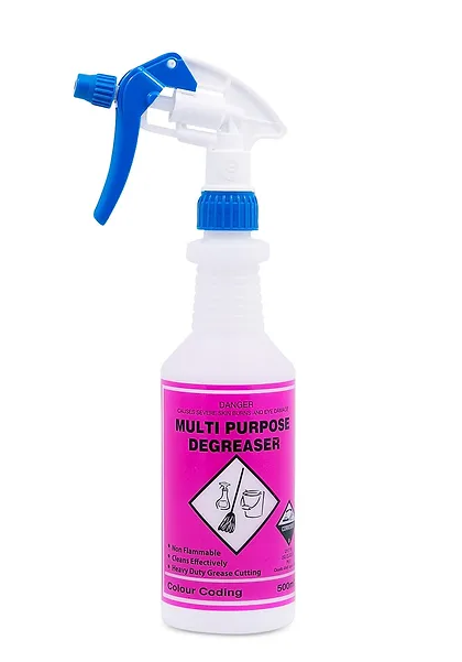 - Colour Coded 500ml spray bottle for multi purpose degreaser. - Dilution instructions on bottle.