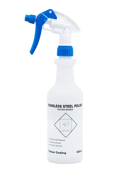 - Colour Coded 500ml spray bottle for stainless steel cleaner water base. - Dilution instructions on bottle.